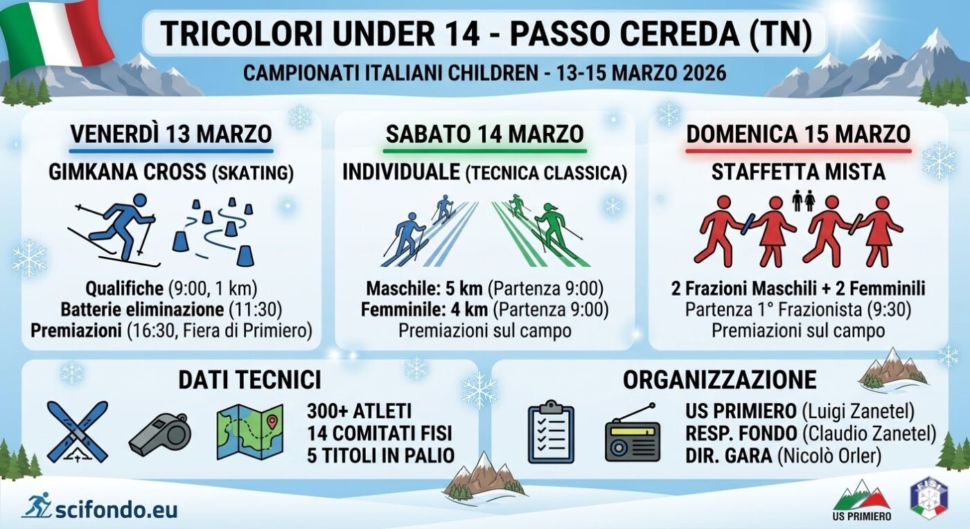 In cabina di regia l’Us Primiero mette in campo i suoi pezzi da novanta: il presidente Luigi Zanetel, il responsabile del settore fondo Claudio Zanetel e il direttore di pista Paolo Debertolis, con la direzione di gara affidata a Nicolò Orler. Un team che garantisce standard tecnici elevatissimi su un tracciato che è storia dello sci nordico.