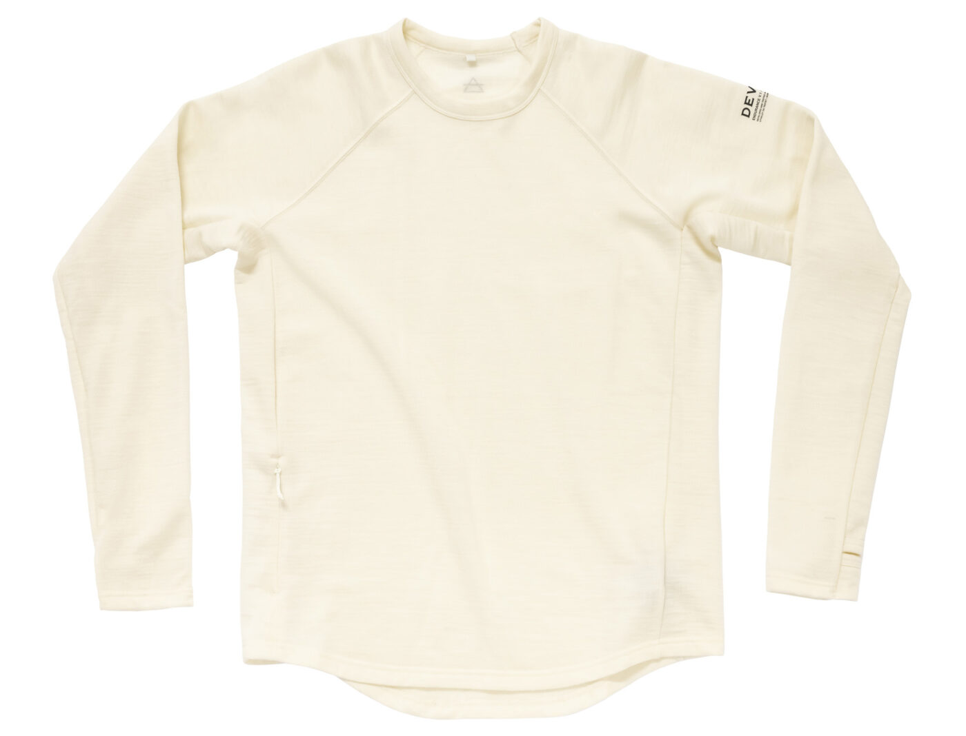Dettagli come i doppi polsini, la tasca laterale nascosta e i fori per i pollici raccontano la cura Devold per chi si muove con intenzione e cerca un comfort autentico, senza compromessi.
