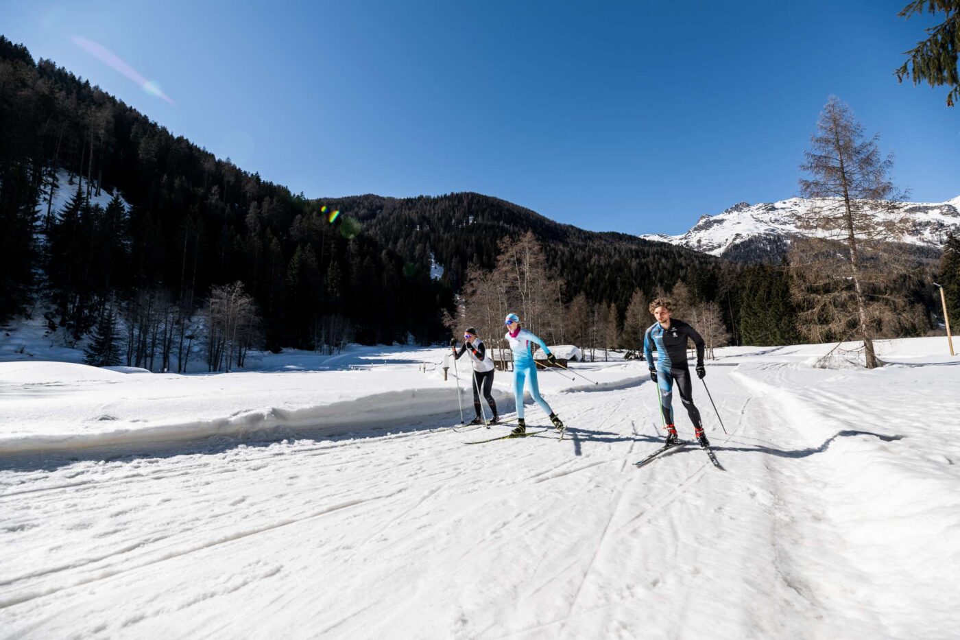 I tre templi del fondo solandro. Ogni località della valle offre una sfumatura diversa di questa disciplina. Vermiglio rappresenta il cuore tecnico, con i suoi 20 km di piste vista Adamello-Presanella e un moderno poligono per il biathlon. Cogolo, adagiata ai piedi dell’Ortles-Cevedale, offre invece tracciati soleggiati e pianeggianti nel Parco Nazionale dello Stelvio, ideali per le famiglie che vogliono sciare tra le architetture storiche della chiesetta di Pegaia. Infine la Val di Rabbi, dove l’anello di 5 km permette di immergersi in un bosco incantato e, grazie all’illuminazione artificiale, di provare l’emozione unica dello sci sotto le stelle.