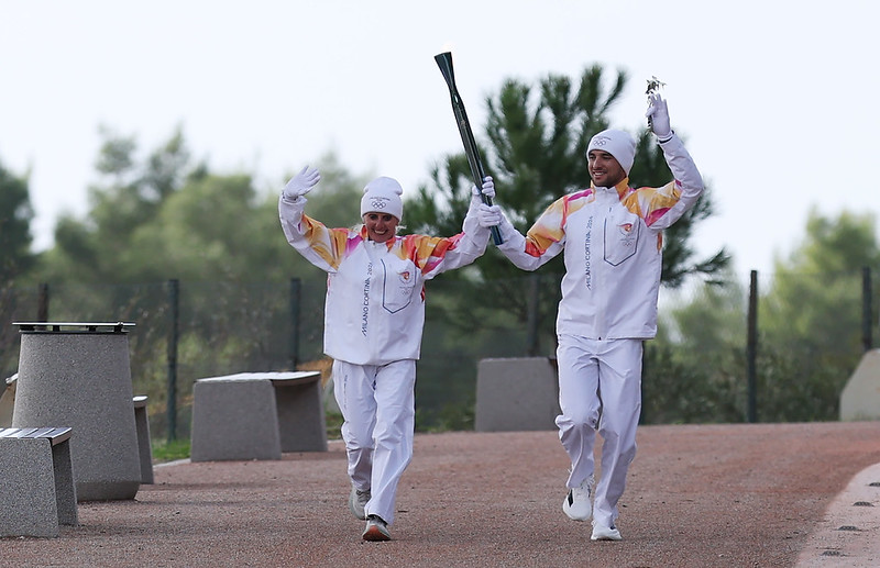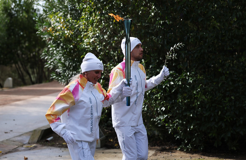 Il primo a inaugurare l’itinerario greco della Staffetta è stato il bronzo olimpico di Parigi 2024 nel canottaggio, Petros Gkaidatzis. Subito dopo, in un passaggio di consegne tra storia greca e italiana, Gkaidatzis ha corso un tratto assieme a Stefania Belmondo, simbolo vivente dello sport azzurro. A seguire, la fiamma è stata presa in custodia da un altro fuoriclasse degli sport invernali, il duplice campione olimpico Armin Zoeggeler.